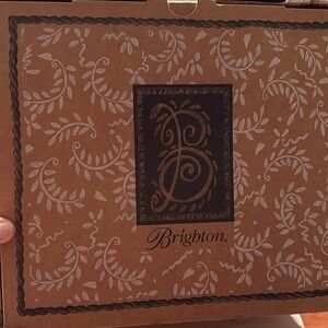Brighton small leather embossed zebra print in black and white called the zeena from the Africa stories collection. The bag is 11” wide, 8” tall, 4” deep. The front has two colorful embroidered butterflies. The back has a cell phone pocket. The bag has a zip top. Interior has a zip pocket and two slip pockets with a medallion lined fabric. There are two braided handles with a 5” drop and a long crossbody detachable strap. This bag comes with a dust bag in the original box with tag. It has never been used !!!