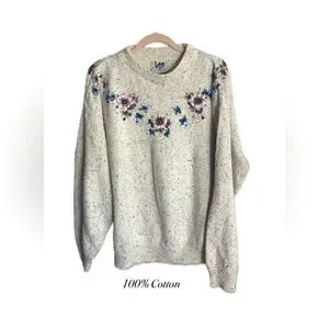 Vintage Lee Sport 100% Cotton Floral Printed Crew Neck Sweater Large Made in USA