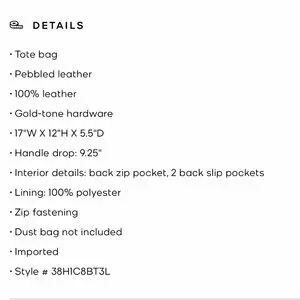 New with tags Michael Kors Beth Large Pebbled Leather Tote