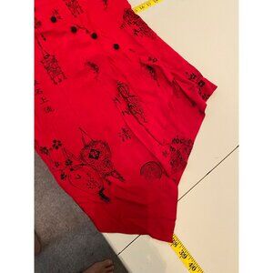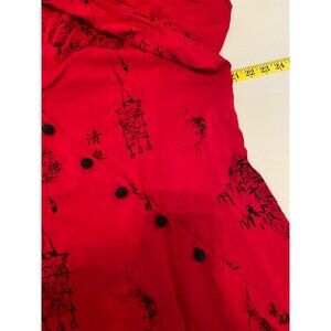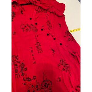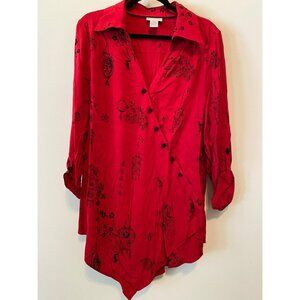 Soft Surroundings Red Tunic Blouse Wrap Black Asian Floral Pattern Large