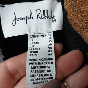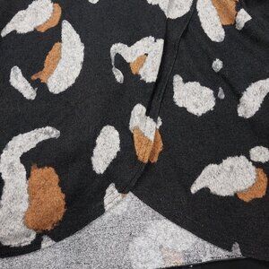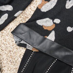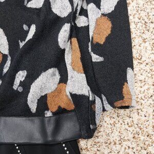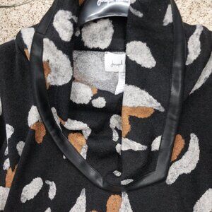 3182 Size 10 Cowlneck Sweater Cross Back with Faux Leather Trim. NWT. Pit to pit 22" length 23" sleeve 24". With a drop shoulder in Black, grey and Tan.