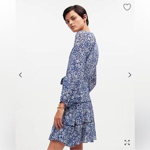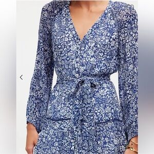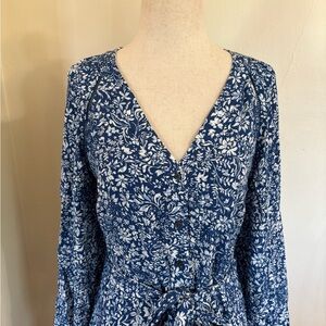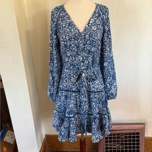 Madewell Tie Waist Long Sleeve Tiered Mini Dress Blue Ditsy Floral Size 00