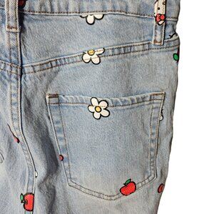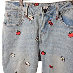 Hello Kitty Womens Embroidered Jeans With Apple & Flower Design Size M Light Blu