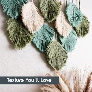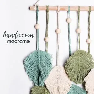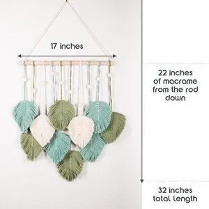 Macrame Boho Indie Farmhouse Teal/Blue/Green/Cream Feather Wood Bead Wall Decor