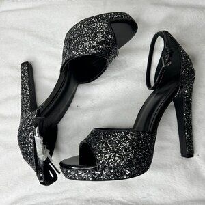 Size 7 from Charlotte Russe. Brand New, never worn. Sparkles with black and silver glitter. Does not come with shoe box.