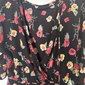 Floral romper made by easel size large. Gathered waist open back with a tie to secure it. Flowy shorts. Approximately 20 inches ptp, 32 inches long.