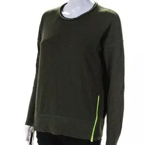 NEW Lisa Todd Cotton/Cashmere Knit Long Sleeve Zipper Hem Sweater Green Size M
