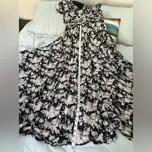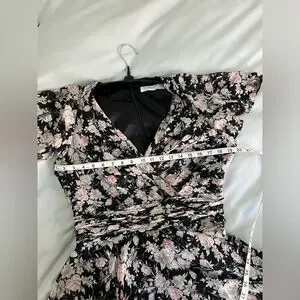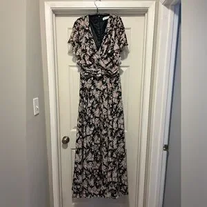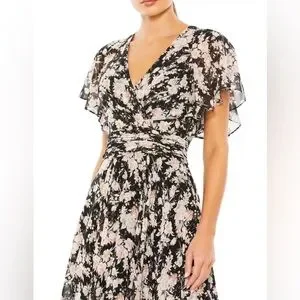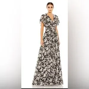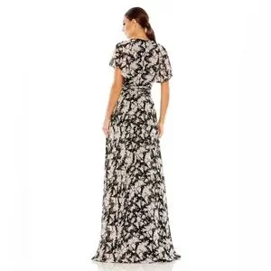 Ieena Mac Duggal Black multi floral flutter sleeve maxi dress (10)