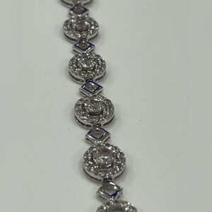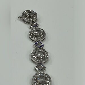 LAB WHITE SAPPHIRE BRACELET 11 SET HALO PRONGS BRAND NEW SECURE LATCH Dazzling with lab-created white sapphire stones, this sterling silver bracelet makes a stunning style accessory.