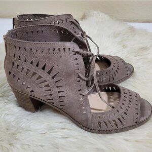 ❤️ Vince Camuto Tarita Suede Cut Out Suede Lace Up Peep Toe Booties