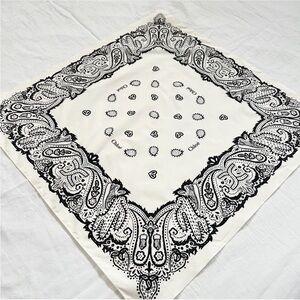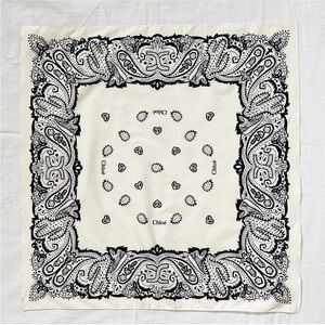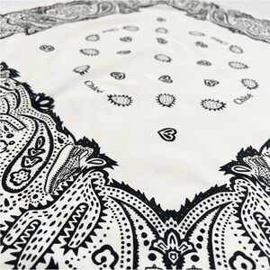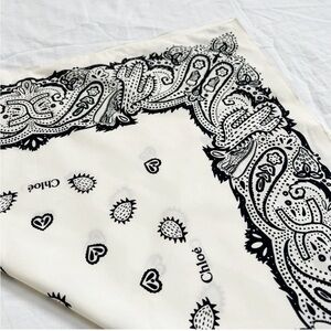 Authentic CHLOÉ Off-White & Black Bandana Scarf Brand New. Still in stores. Made in Italy- Square organic cotton- and organic silk-blend scarf in off-white and black. Graphic pattern and logos printed throughout.