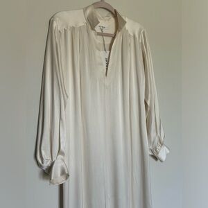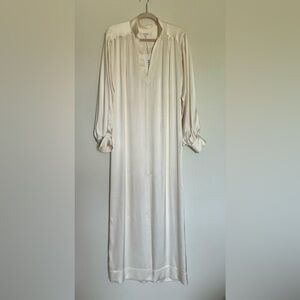 Rich silk elevates this luxe caftan punctuated with a stem-showing slit. New without tags. Never worn.