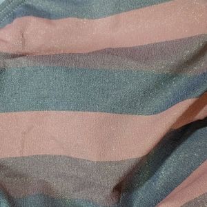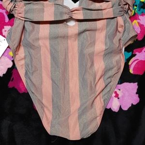 New with tags! Not made anymore and very hard to find! Sexy low cut with two bands around high waistline. There is a shimmer gold throughout the entire swimsuit.