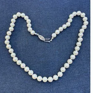 This vintage pearl necklace captures an era of timeless elegance, offering a touch of sophistication to any ensemble. The intricate clasp adds a delicate charm, reminiscent of bygone days.