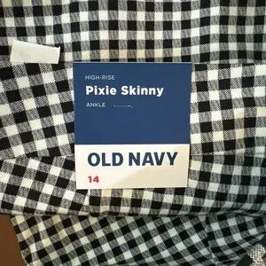 NWT Old Navy Women’s Pants High-Rise Pixie Skinny Ankle Plaid Black White Size14