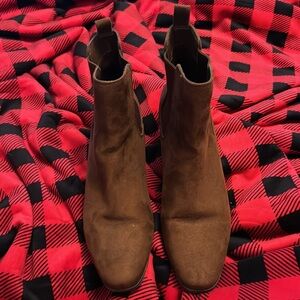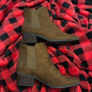 Lightly worn brown low heeled womens booties