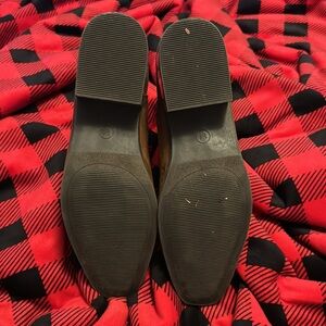 Lightly worn womens brown low heeled booties