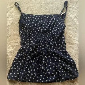 Navy blue floral flow top from Brandy Melville, floral print and cream roses.