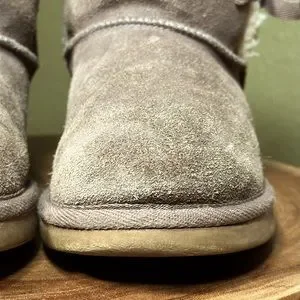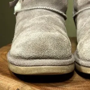 Give your laidback look some feminine flair with these women's Victoria Short boots from Koolaburra by UGG. Grey suede upper with faux shearling, sheep skin lining. The uppers are accented by decorative bows. Soles will get you through whatever winter throws at you. Very good preloved condition. Women’s size 5. See all pictures for visual description.