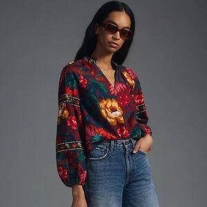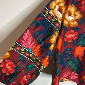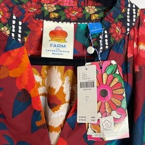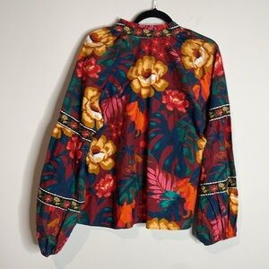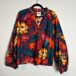 Farm Rio | Dark Floral V-Neck Poplin Blouse Size Large NWT