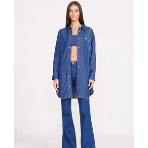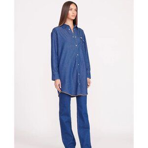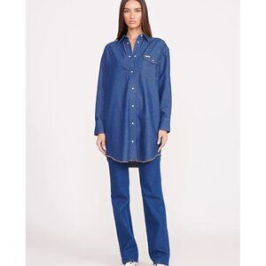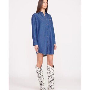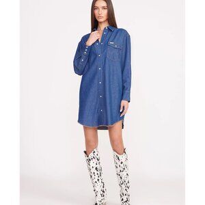 NEW Staud + Wrangler The Oversized Western Shirt Dress in Dark Rinse