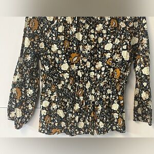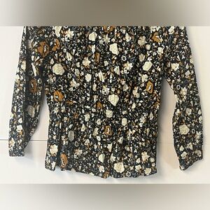 Universal Threads navy gold cream peplum style elastic waist blouse. size Small