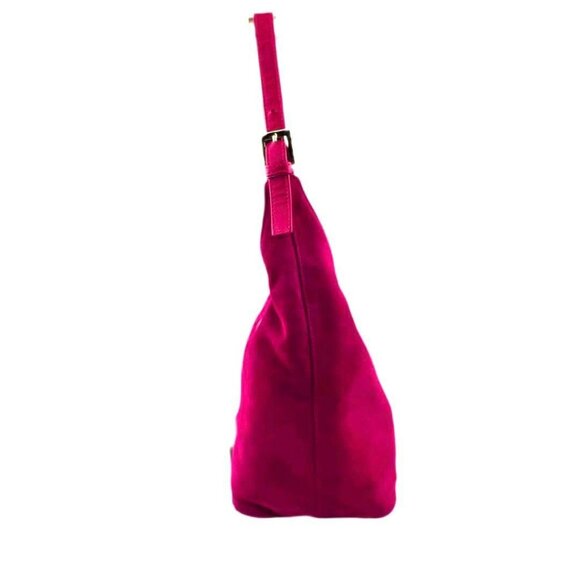 This is an authentic FENDI Mamma Bucket Baguette Shoulder Bag in Pink. This Fendi Baguette features Gold-Tone Hardware and a Single Adjustable Shoulder Strap with a FF gold buckle adorned with glitter. Single Interior Pocket. Snap Closure at Front.