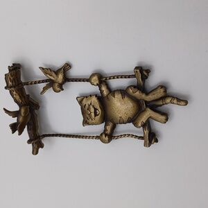 This fun J Jonette Brooch is done in a brass tone. The expressions on the faces are so much fun! Measures 3 inches long and 1.5 inches wide.
