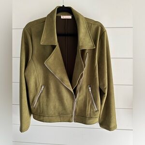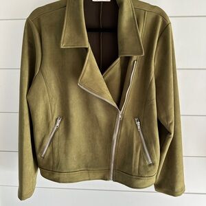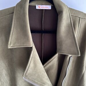 This vegan suede blazer was purchased on Amazon last season and worn a few times. This olive green color is on trend and perfect to wear with jeans & loafers or with trousers or a pencil skirt in the office. In like new condition. See pictures to verify condition and measurements.