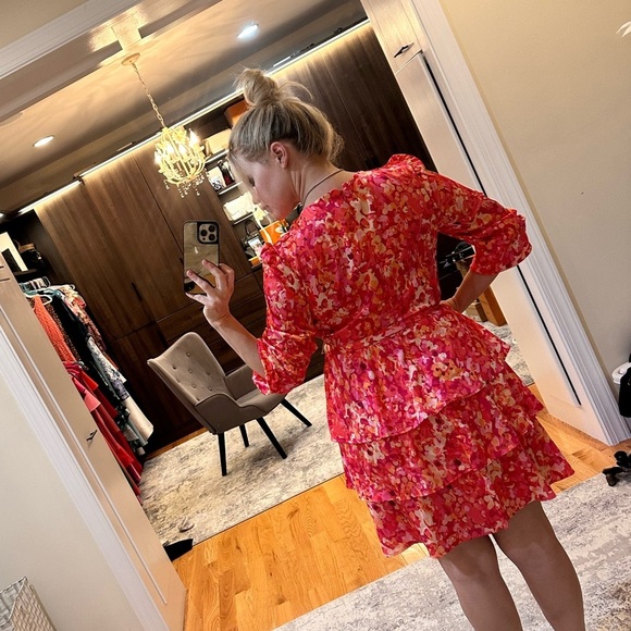 NWT Nicole Miller Pink Flower Silky dress Size L