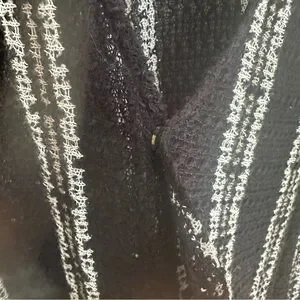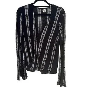 ONEIL Black White Brown Striped Open-Front Knit Cardigan Long Sleeves in Large