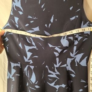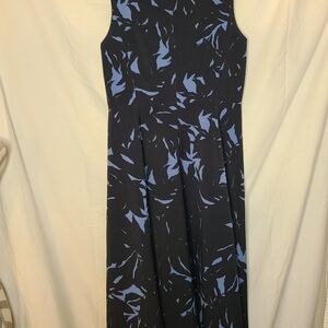 Ann Taylor navy blue and lighter blue floral print woven fit and flare midi dress, Size 6. Lightweight and soft polyester/spandex blend body and 100% polyester lining. Sleeveless and with a classic scoop neck. Rear zipper closure and a very flattering fit. Great to wear layered with a cardigan or light jacket, or simply by itself with classic jewelry. Easy to dress up or down and great for any season and occasion. Coming from my smoke and pet free home.