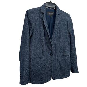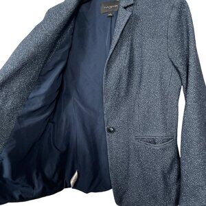Ann Taylor Factory Tweed Blazer Size 6 Navy Blue One Button Career Workwear