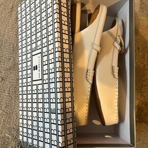 They were sold as a 7, but are more like a 6.5. sad they don’t fit me. Comfy, soft and cute! Cream colored vegan leather loafers, brand is newbella.