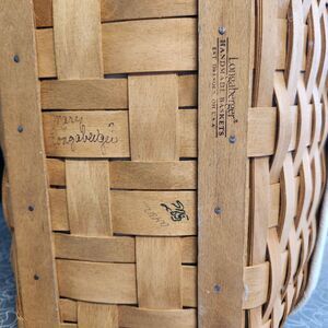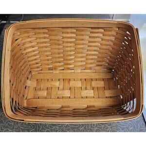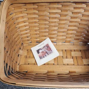 This beautiful Longaberger storage basket is perfect for any room in your home. Crafted with care, this handmade basket features a woven pattern in brown with a stained finish. The basket is made from a combination of wood and plastic materials and comes with a protector, divider, and liner for added convenience.