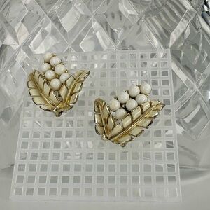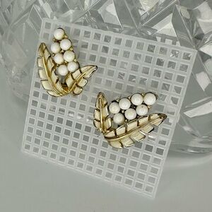 1” CORO Vintage Enamel & Beaded Golden Wheat/Corn/Grapes Signed Clip Earrings