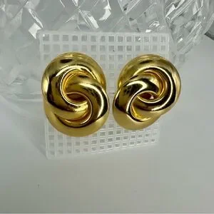 2” Vintage Chunky Interlocking Gold-Tone Clip Earrings