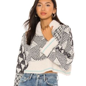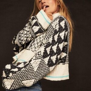 Free People Jupiter Pullover Turtleneck Sweater Falling Waters Combo Sm Md NWT