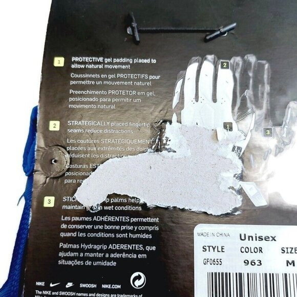 NIKE D-Tack 6.0 Durable Lineman Football Padded Gloves Men's Size M Blue White