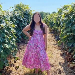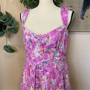 NWOT Adorable Presence Pink Floral Bustier Midi Dress With Pockets