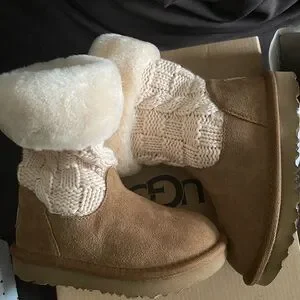 UGG JUNIPER GENUINE SHEARLING KNIT SHAFT BOOTS- TODDLER