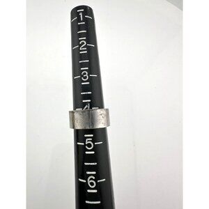 Gucci abstract G ring. Round silver tone band with abstract "G" cut out. Texturing around G in band. Size approx. 4.25.