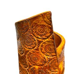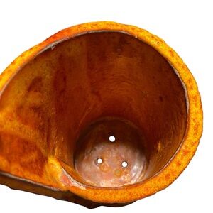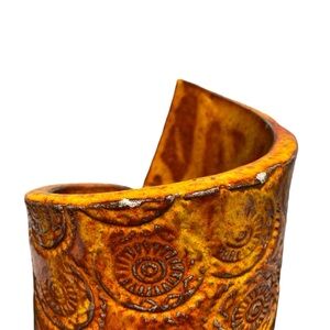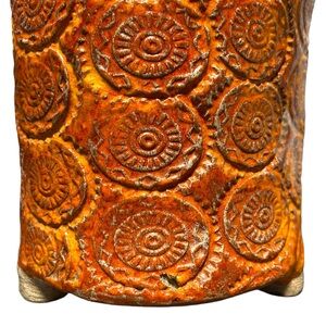 Handcrafted Pottery Vintage Planter Vase Copper Orange Abstract Mandala Pattern