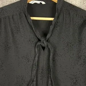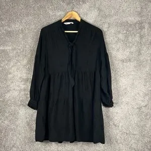 Zara Dress Womens Medium Black Dot Tiered Long Sleeve Tie Front Neck