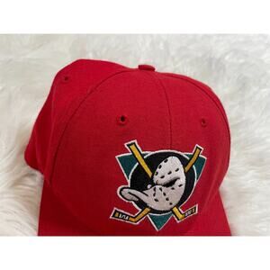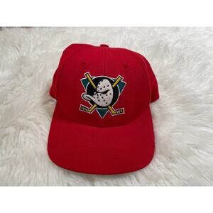 Anaheim Mighty Ducks Vintage 90's Twins Enterprise RED Snapback Cap Hat **RARE**