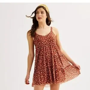 Juniors' Love, Fire Tiered Mesh Babydoll Mini Dress