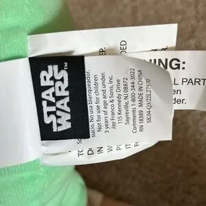 This toy yoda stuffed toy is in great condition. Its dimensions are approximately 20 inches long and 24 inches from ear to ear. This stuffed yoda is coming from a smoke free and pet free home. The colors may vary due to lighting.
