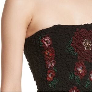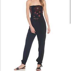 Free People Embroidered Black Strapless Jumpsuit Sz Small