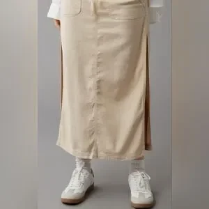 AE Dreamy Drape Linen Stretch Maxi Skirt