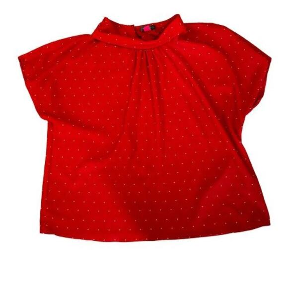 Vince Camuto Red Polka Dot Mock Neck Blouse Size Petite Large